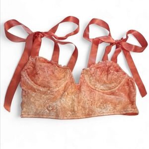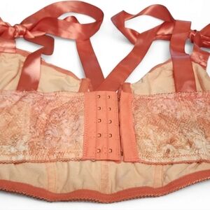 URBAN OUTFITTERS Out From Under COQUETTE Pink Cream Lace Corset Top Bow Straps