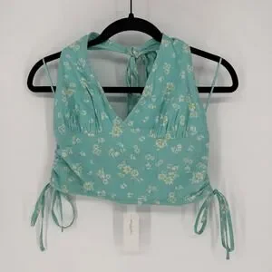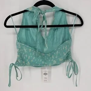 AMERICAN EAGLE TEAL FLORAL CROPPED HALTER TOP MEDIUM NWT