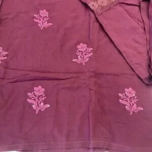 Color: Deep purple plum base with tonal purple floral embroidery and small metallic sequins.