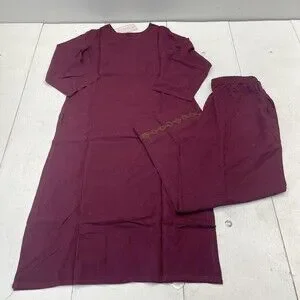 Chic Boutique Studio Kurta Pants Set Womens L Purple Floral Embroidered 2 Piece