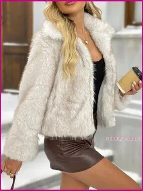 Fluffy Faux Fur Winter Coat with Lapel Collar and Pockets