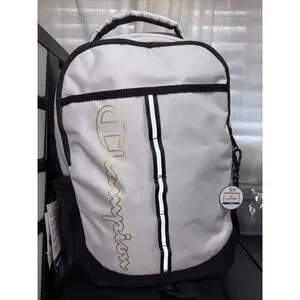 Champion Center Backpack White Laptop Sleeve & Padded Zipper Pockets BRAND NEW