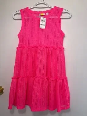 Epic Threads Girls Bright Neon Pink Sleeveless Tiered Eyelet Coverup size M NWT