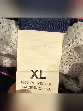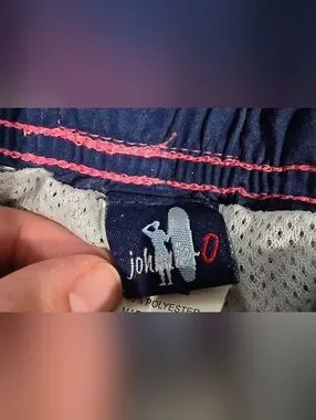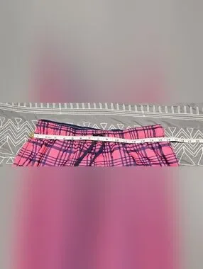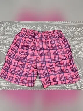 Great condition. Size XL. Pink and blue in color. Drawstring waistband. Logo on lower left side And back waistband. Liner inside. Front pockets and one back pocket. Measurements and fabric content listed above in pictures.