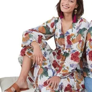Roller Rabbit Long Sleeve Floral Boho Maxi Size XL Soft Casual