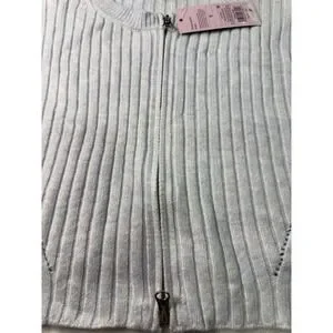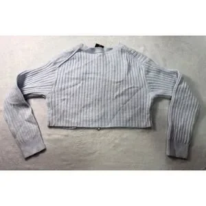 Wild Fable Womens Light Blue Ribbed Zip Up Cropped Sweater Long Sleeve Size S