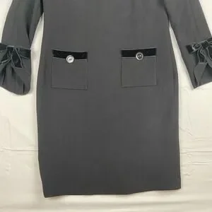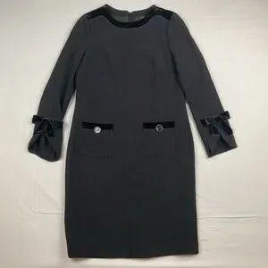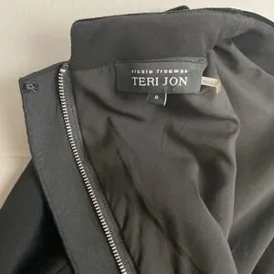 Teri Jon Rickie Freeman Black Velvet Trim Bow Sleeve Cocktail Dress Size 6