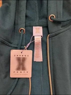 Design: A relaxed or oversized fit with a full-front metal zipper, drawstring hood, and ribbed cuffs and hem.