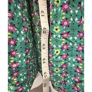 Green with Yellow, Purple, White Floral and Geo Print Pattern