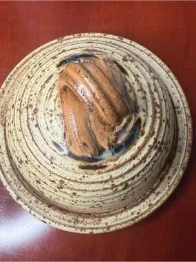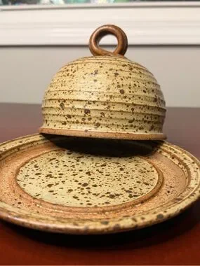 Signed Handmade Stoneware Speckled Covered Dome Butter Dish