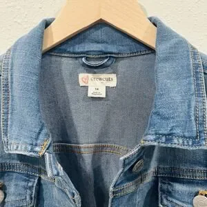 J.Crew Crewcuts Button Front Jean Jacket Blue Youth Girls Classic Crop Size 14