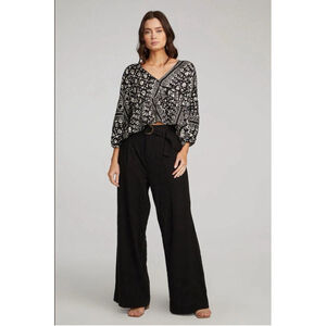 NWT Saltwater Luxe Top Madaris Ruffle Printed Black White Oversized Sz. S
