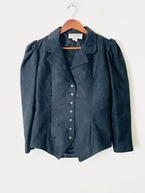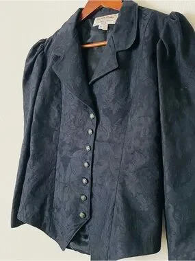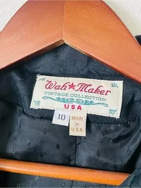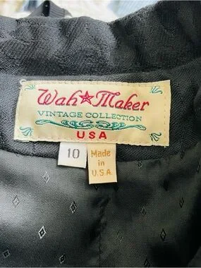 Vintage Wahmaker SIZE 10 & 12 black Victorian floral style jacket and skirt set