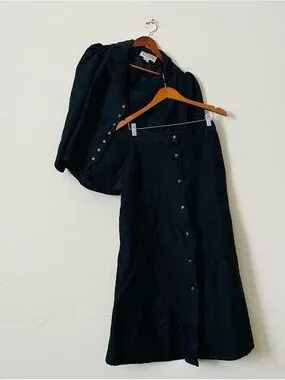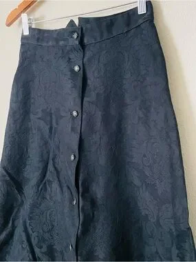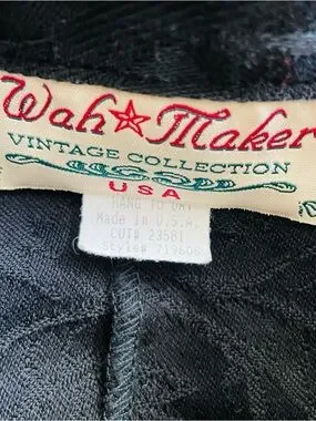 Vintage vtg Wahmaker Victorian style button jacket and midi skirt in black burnt floral print. Made in USA