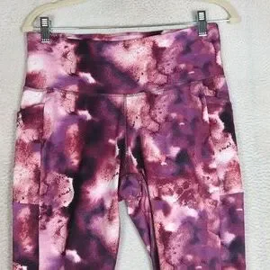 Yogasmoga Women's Pink Watercolor Athletic Yoga Pants Leggings Size L