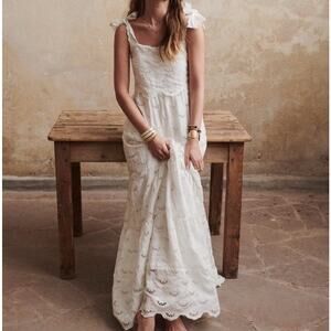 Sézane Sezane Elia Dress Womens 38/ M Ecru Boho Sleeveless Tiered Midi Maxi