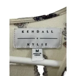 Kendall Kylie Paisley Print Lace Up Romper Cream Navy M