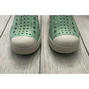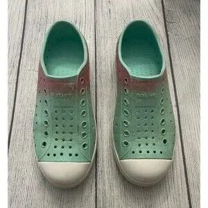 Blue & Pink Glitter Native Natives Jefferson Girl Shoes, Size Youth 13. Both shoes have some glitter that has rubbed off on the heel, one is more than the other - see pictures. Overall, good condition. Cleaned and ready for the next kid.