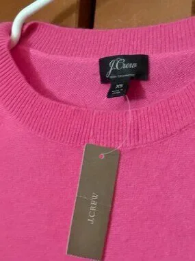 J Crew Sz XS Neon Pink 100% Cashmere Crew Neck Pullover Sweater NWT