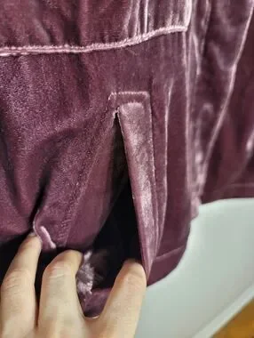 Loft jacket is a statement piece, blending a luxurious feel with a structured utility design. No string included. The rich, muted muave color and crushed velvet texture make it a versatile addition to any dark academia, Quiet Luxury, old money, festival, cottagecore, retro, or grunge wardrobe.