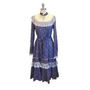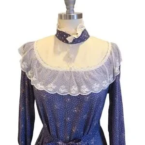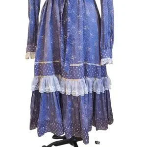 Gunne Sax Dress Purple Prairie Cottage Core Floral Lace Size 11 Vintage 70s Blue
