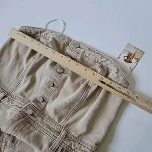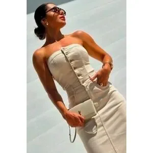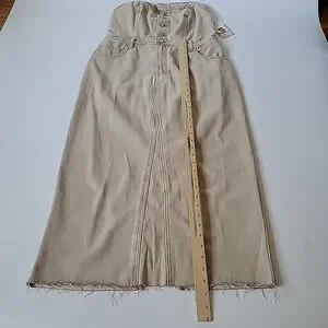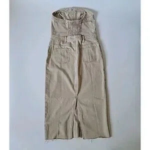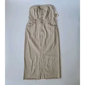 Sincerely Jules Strapless Square Neck Denim Midi Pencil Dress Beige NEW Neutral