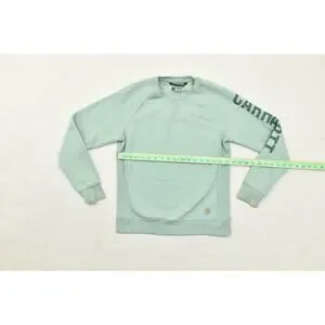 Carhartt Women's Relaxed Fit Sweatshirt Size S Green Crewneck Logo Sleeve Cotton