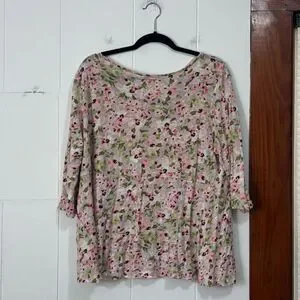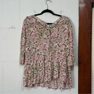 J. Jill Love Linen Springtime Floral Keyhole Tie Back Tunic Blouse Top Large