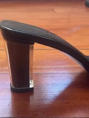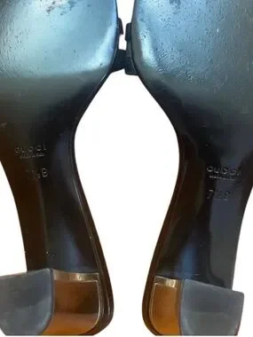 Auth Gucci black Leather Clear Mules block heel lucite vintage sandal 7.5