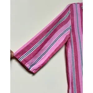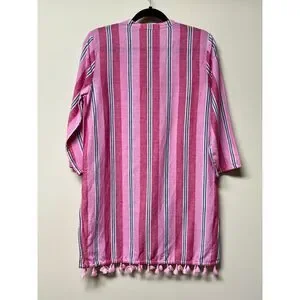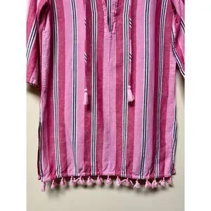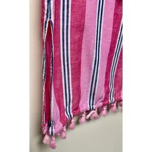 J. CREW FACTORY Pink/White/Navy Striped Tassel Tie Tassel Hem Cover-Up, Sz S