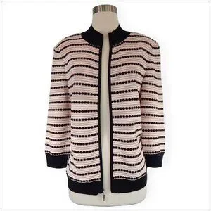 St. John Sport Knit Cardigan Jacket Striped Zip Front $900 New NWT Size M