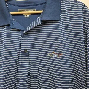 Greg Norman Play Dry Golf Polo Shirt Size XXL Performance Striped Navy White EUC
