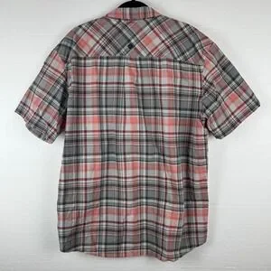 Prana Short Sleeve Button Up Shirt Mens Size Large Plaid Red Gray Pocket Casual