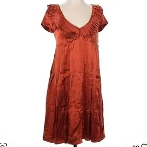 Susana Monaco Orange Shiny Pleated Collart Short Sleeve Zip Dress Small