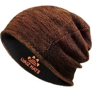 Men Dark Orange+black Lvaiz Fleece Lined Beanie Hat Windproof Winter Unisex