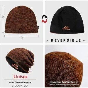 Materials and Features: This mens beanie outer made with tight flip design, not like loose knit slouchy beanies or tight skull caps, it will blocks the outside cold and wind definately in winter. Soft fleece lining inside will lock-in heat, keeping your head and ear warm & comfortable.