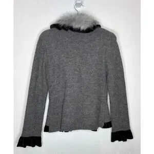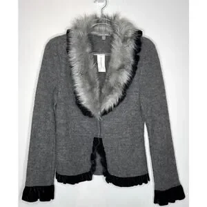 Vintage 2000s Roz & Ali Gray Faux Fur Collar Wool Blazer NWT size small