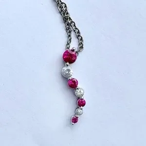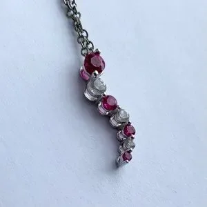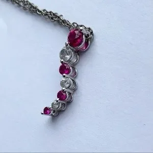 10k White gold Pink gemstone wavy necklace