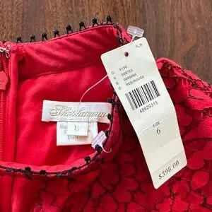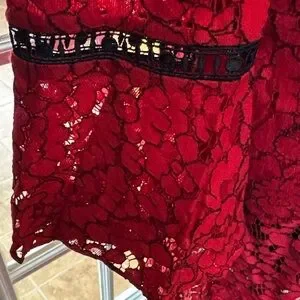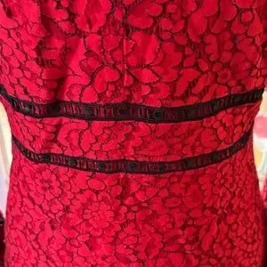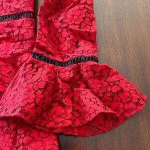 NWT Shoshanna Chic & stunning red lace dress with long sleeves. Features a keyhole neckline and ruffled hem. Ideal for elegant events. Fitted