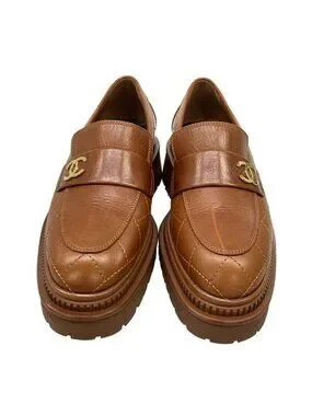Chanel Loafers 36 C Quilted Brown Gold CC Logo