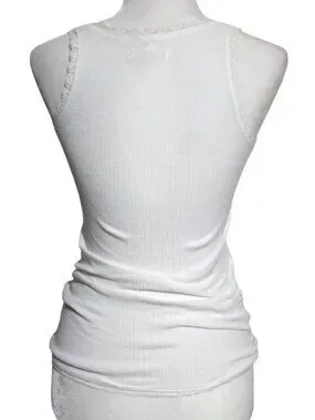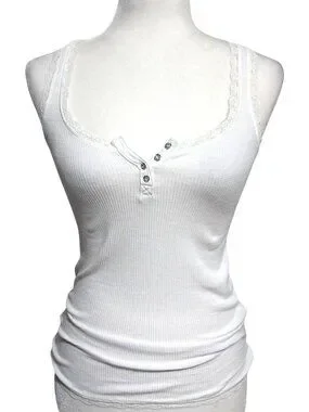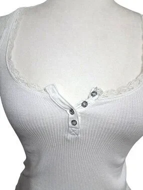 Aeropostale Henley Tank Top Lace Trim with Rhinestones Womens Size S White Waffl