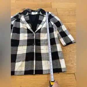 THE ODELLS Black White Buffalo Check Rainbow Embroidered Cotton Blazer M (1232)