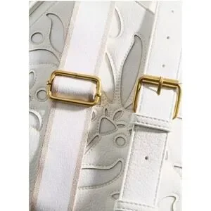 This bag features a beautiful floral cutout design with soft neutral lining underneath, giving it a subtle boho / boutique vibe. The textured faux leather and gold-tone hardware elevate the look, making it perfect for everyday wear or dressing up a casual outfit. Comes with an additional strap