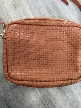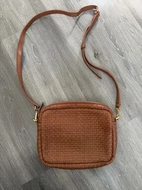Quince Woven Leather Crossbody Bag in Cognac Brown
