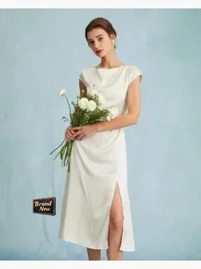 Summer Casual Mini Dress with Side Slit and Boat Neck