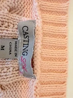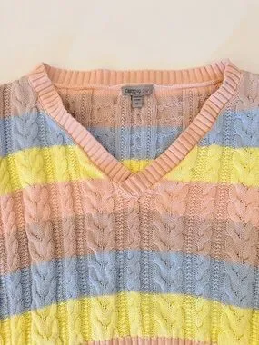 Pastel stripe cable knit vest sweater Vneck M 18.5” long 21” ptp