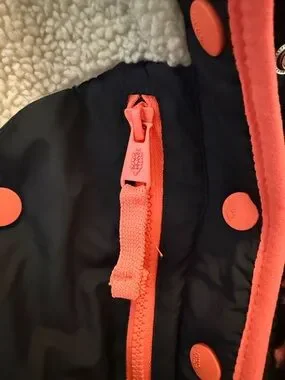 Warm fleece pullover with bold floral print. Coral trim and snap placket add contrast. Zippered chest pocket for small essentials. Soft, plush fleece for cozy layering.