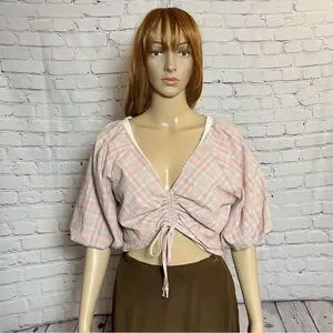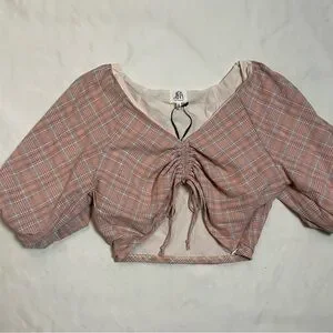 NWT New dRA Plaid Puff Sleeve Crop Top Size L