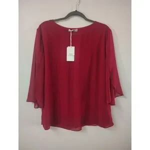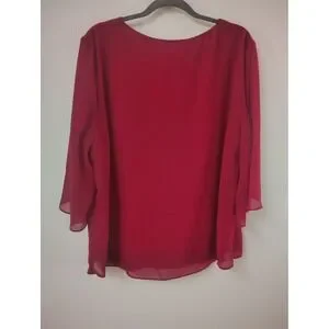 Grace Karin Womens Red Chiffon Split Bell Sleeve Layered Blouse Top Size 2XL NEW
