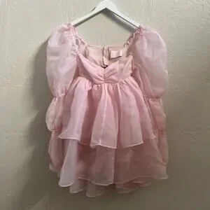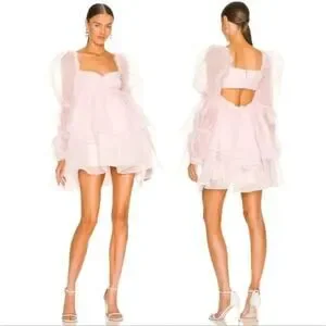 Selkie Ballerina Pink Long Sleeve Tiered Chiffon Puff Mini Moonlight Dress